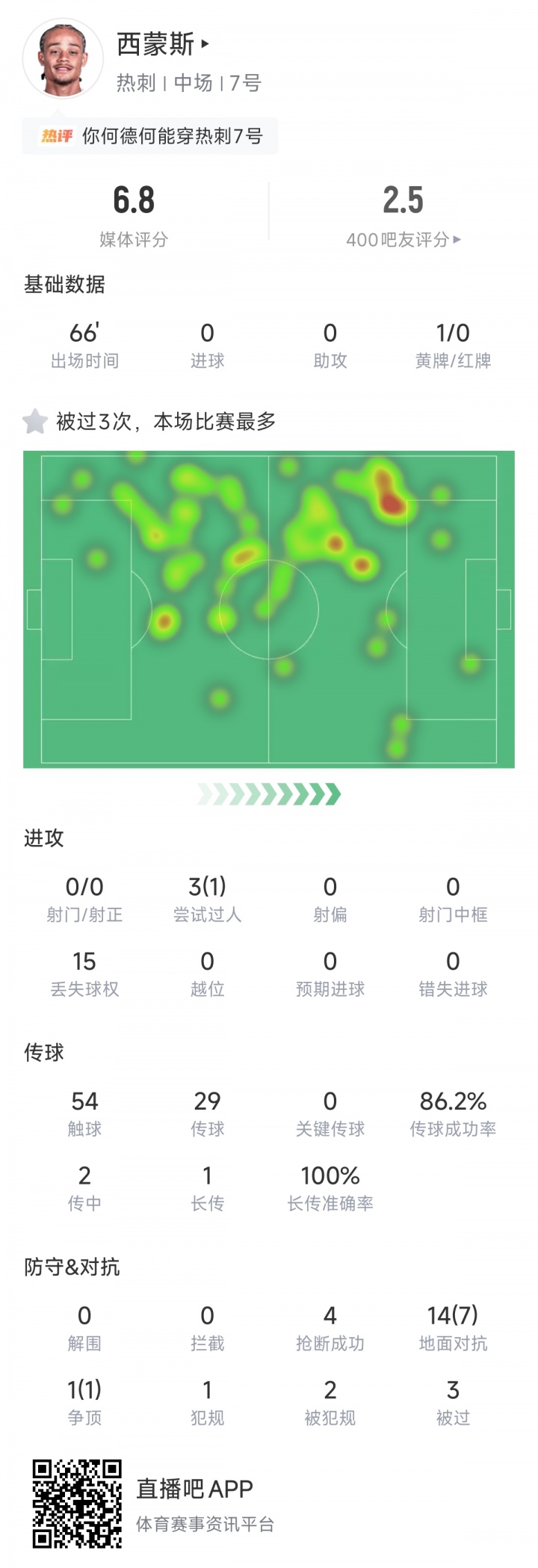 22歲的西蒙斯昨晚第7分鐘替補登場,換下腦震蕩的貝里瓦爾。但是他出戰(zhàn)66分鐘表現(xiàn)不佳,被過3次+15次丟球權(quán),傳球成功率86.2%。在第73分鐘他被換下。